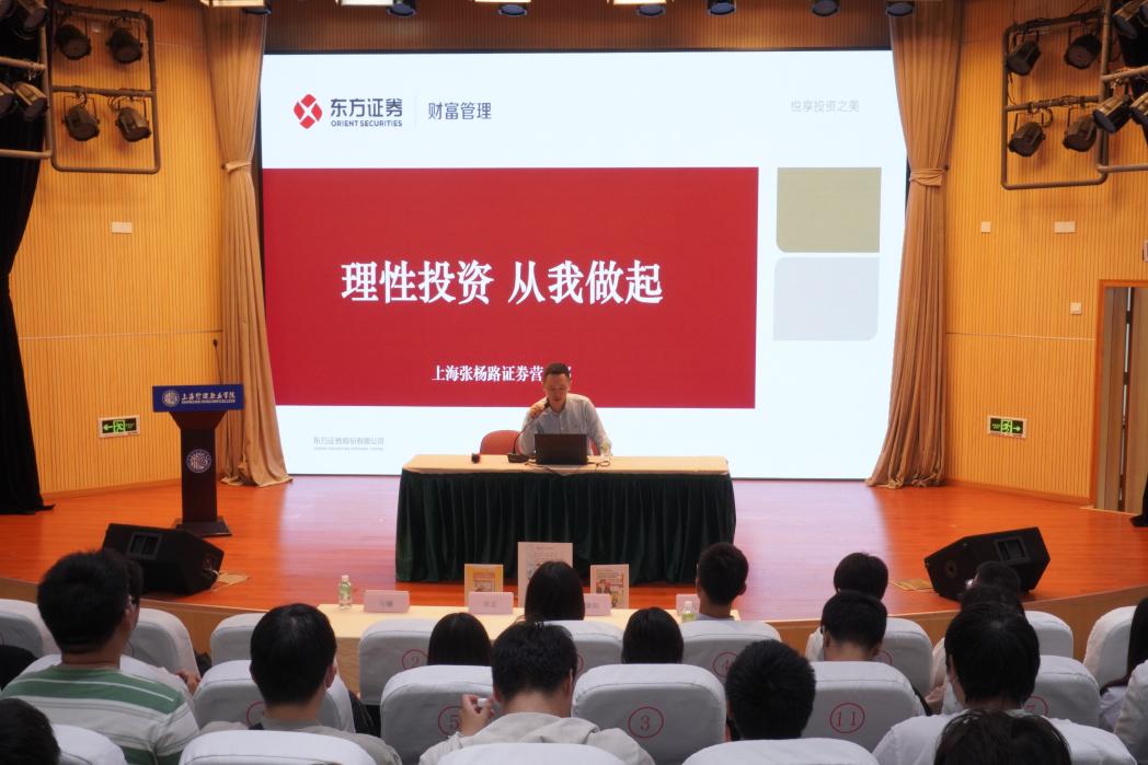 讲座伊始,东方证券上海张杨路证券营业部营销副总杨肇剑、上海浦东新区张杨路证券营业部营运风控副总李正,通过深入浅出的讲解,向学生们介绍了当前金融投资领域的常见诈骗手段。从虚假投资理财平台的伪装,到电信诈骗中精心设计的话术陷阱,专家们结合实际案例,详细剖析了诈骗分子的作案手法和特点,让学生们对金融诈骗有了更为直观和深刻的认识。