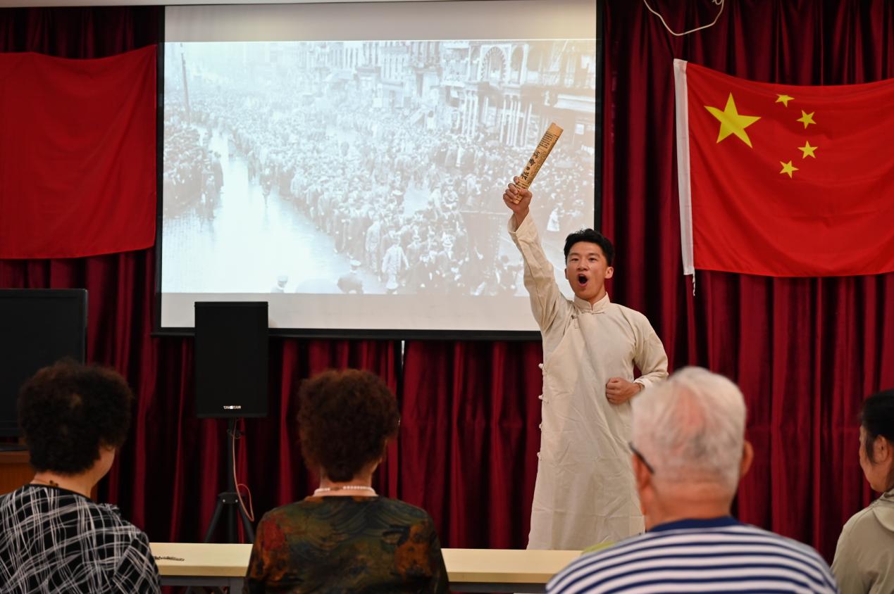 为深化党史学习教育,推动理论宣讲走进基层,5月22日上午,学校青年党史宣讲团于走进静安区永灵小区,以原创红色情景剧《党章守护者——张人亚》为载体,开展了一场有温度、有深度、有力度的沉浸式理论宣讲活动。马克思主义安博(中国)汪亚娣老师、行政第三党支部葛一丹老师以及社区党员群众等50余人共同参与这场特殊的“红色文化盛宴”。