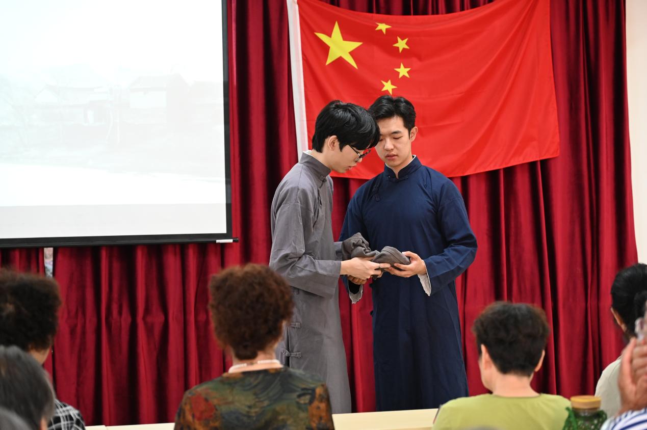 “这些文件比我的生命更重要,一定要守护好它们!”随着铿锵有力的台词在社区活动室响起,宣讲团成员通过沉浸式演绎,将观众带回1927年那个风雨如磐的年代。从深夜油灯下誊抄党章的专注,到与敌人斗智斗勇的惊险时刻,再到弥留之际托付革命文献的感人场景,演员们以细腻的表演生动再现了张人亚同志用生命守护党的第一部党章等珍贵文献的壮举。
