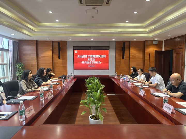 会议伊始,党政办主任曹娜全面回顾了本次跟岗培训工作。会议指出,此次文山州骨干教师来校进行深度跟岗学习意义深远。学校紧密结合跟岗教师需求,精心设计了“一对一”精准指导方案,并通过专题讲座、观摩体验、深度研讨及校园活动参与等多维培养路径,有效促进了教师们的专业成长和实践能力提升。