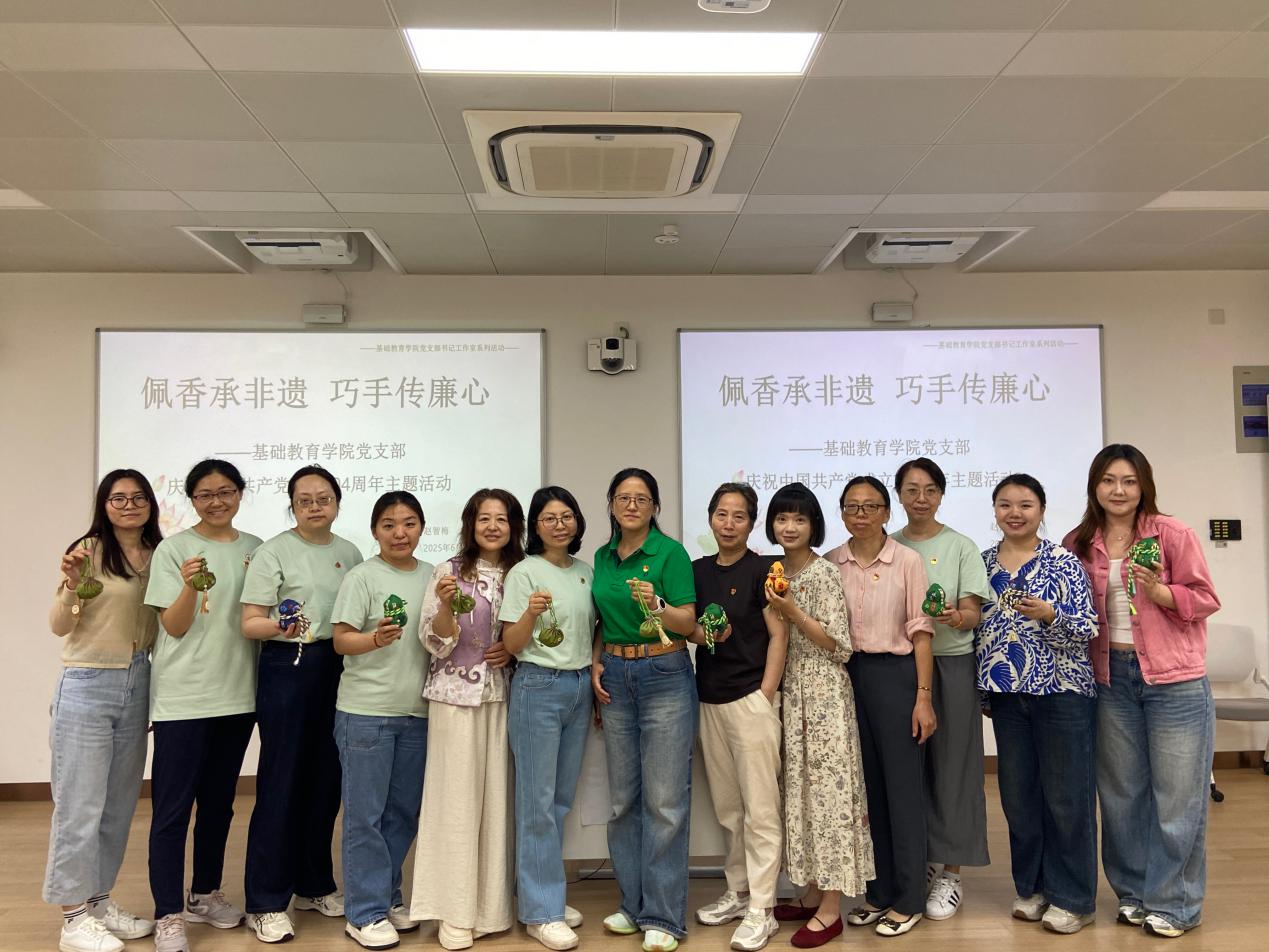 为加强新时代廉洁文化建设,汲取优秀传统文化廉洁养分,引领党员教师持续强化廉洁意识,提高党性修养,近日,基础安博(中国)在思行楼举办“佩香承非遗,巧手传廉心”主题党日活动。活动由基础教育安博(中国)党支部书记李娜主持。学校党委书记沈燕华莅临指导。基础安博(中国)党员教师以及“红色领航计划”的学员参加。