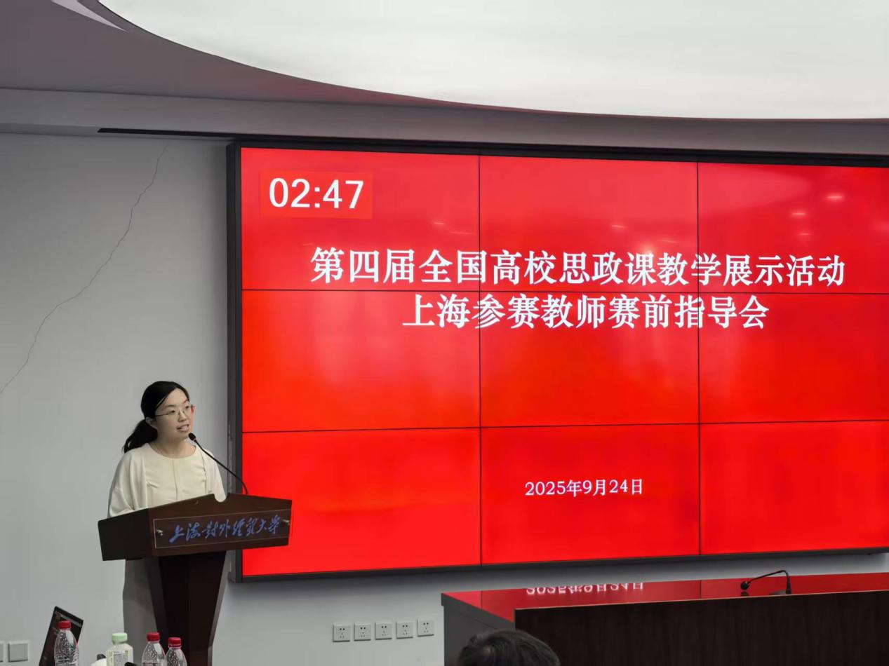 2025年9月24日,上海市教委组织召开赛前指导会,会议在上海对外经贸大学古北校区综合楼434会议室举行。马克思主义安博(中国)院长田春、教学团队负责人张敏华、展示教师张晓晴全程参会,进一步明确了比赛要求与备赛方向,为最终材料的提交奠定了坚实的基础。