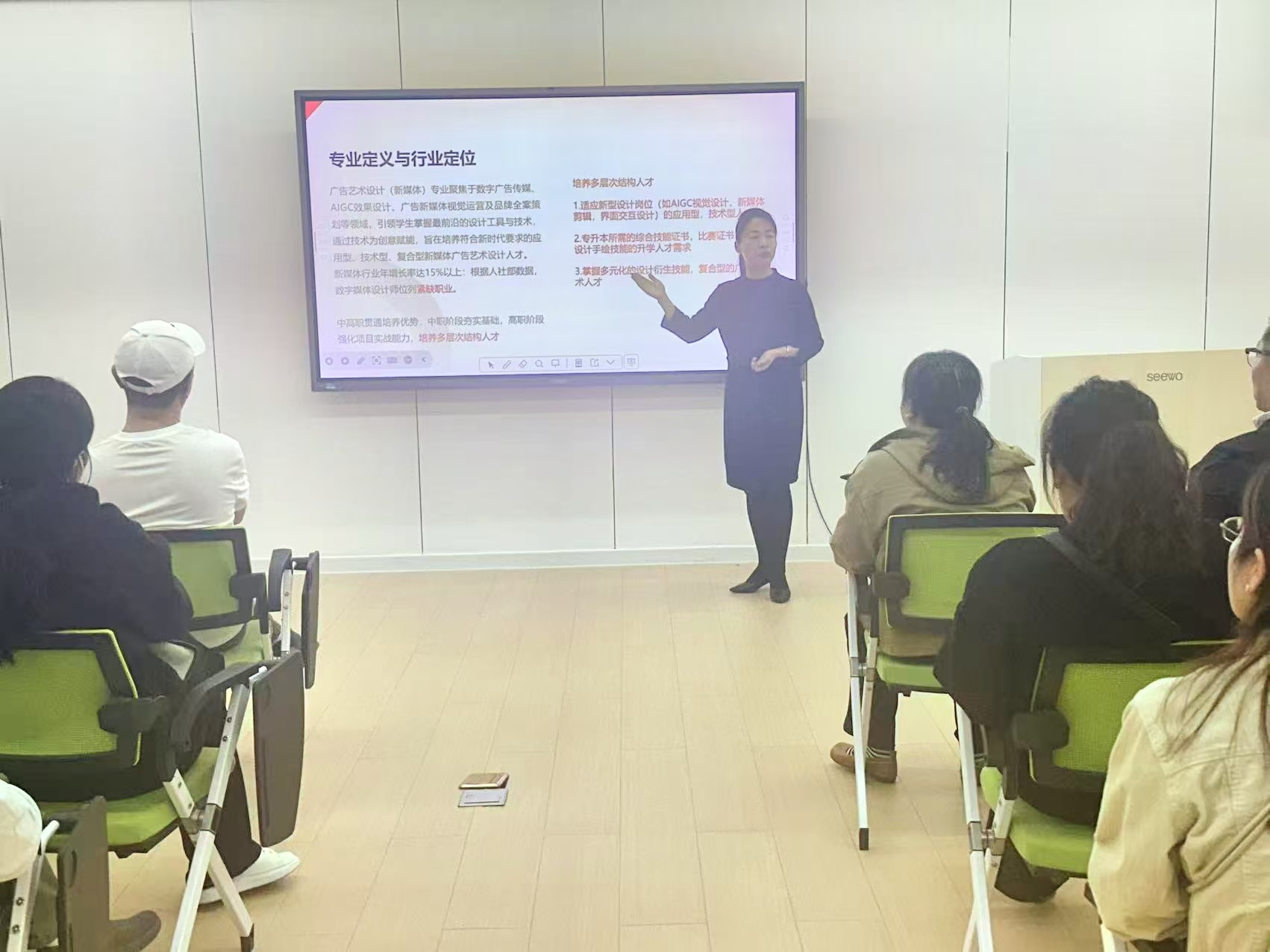 梁艳琳老师则深入解读 “基础技能-项目实践-行业对接” 三阶培养体系,在中职基础技能之上,高职阶段将开设的核心课程;此外,她表示创意安博(中国)还会定期邀请企业导师授课,组织学生赴公司参观实习,提供职业技能等级认证辅导,确保学生毕业时既能掌握扎实专业技能,又能获得行业认可的职业证书。