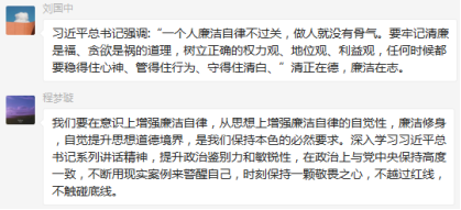 通天学习和收看“清廉自律”微视频,学生们获益良多,纷纷表示,廉洁从教、倡树正气在中华民族的历有着悠久的传统,上下五千年,始终贯穿着一条“爱国家爱人民、重风骨重气节”的主线。中华民族正是沿着这条清风浩荡、正气浩然的主线走过来的。作为新时代的大学生,应自觉培养奉公、清正、廉洁的思想道德品质,要让全社会的热情,点燃熊熊燃烧的廉洁之火! (邝姗)