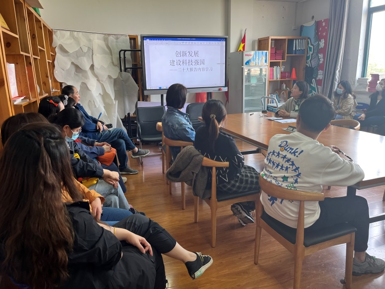 支部带领教职工“读原文”,从党的二十大报告内容原文中开展学习。党的二十大报告强调,从现在起,中国共产党的中心任务就是团结带领全国各族人民全面建成社会主义现代化强国、实现第二个百年奋斗目标,以中国式现代化全面推进中华民族伟大复兴。实现中国式现代化第一动力是什么?是创新。如何谋划科技创新?二十大报告作出了系统的统筹部署,那就是“实施科教兴国战略 强化现代化建设人才支撑”。
