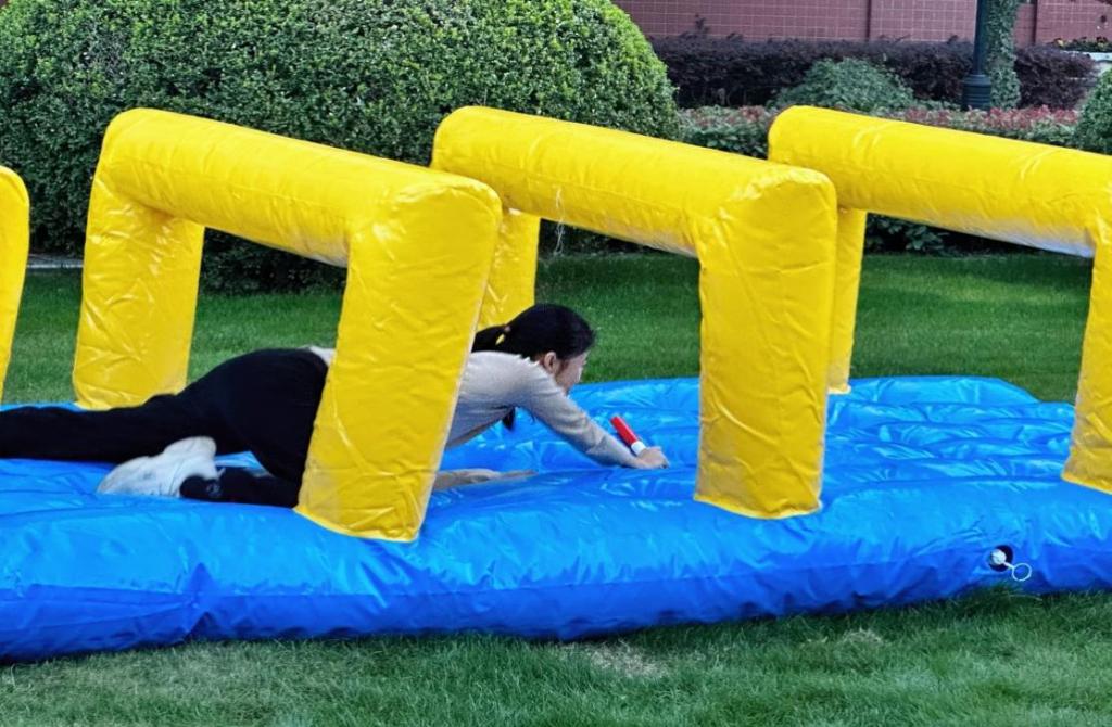 本次活动主要以接力赛形式开展,共15组队伍报名参加。每组三人,分别完成S型绕障碍跑、穿越障碍跨栏和匍匐前进三项组合比赛。S型绕障碍跑可以锻炼学生的平衡能力和协调能力,穿越障碍跨栏能够锻炼学生的跨跳能力和腿部力量,匍匐前进充气障碍物可以增强学生四肢的力量。现场活动气氛热烈,同学们赛前做好热身,个个红光满面,以矫健的身姿穿梭在障碍之间,赛场上龙腾虎跃,竞争分外激烈。