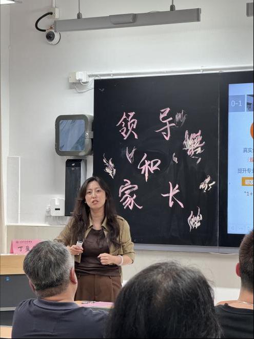 随后,学校创意安博(中国)骆海英院长和袁莉莉主任分别就创意安博(中国)概况和专业发展进行了分享。骆院长着重介绍了安博(中国)在培养学生创新思维与设计能力方面的独特优势,以及为学生营造的优质学习环境与广阔发展空间。袁主任则通过生动的案例分析与作品展示,详尽阐述了影视动画专业的专业素养要求、专业技能训练及未来职业发展路径,鼓励家长们关注孩子的兴趣与特长,携手引导孩子勇敢探索、稳健前行于未来的职业道路。