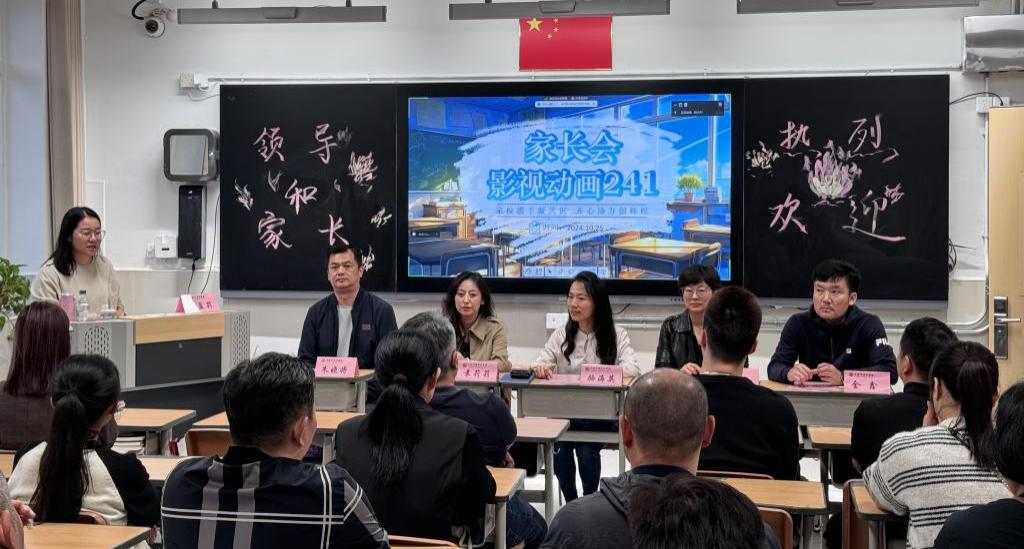 会上,丁盈莉老师首先向与会家长逐一介绍了各位嘉宾,并一同观看了商校王云玺校长的视频致辞,接着商校教务处主任朱晓将、影视动画专业负责人金鑫分别向家长们介绍了学校学籍管理和影视动画专业情况,强调了甄别考核和转段鉴定两个关键阶段,以及5年的课程体系、教学内容改革及教学团队构成。