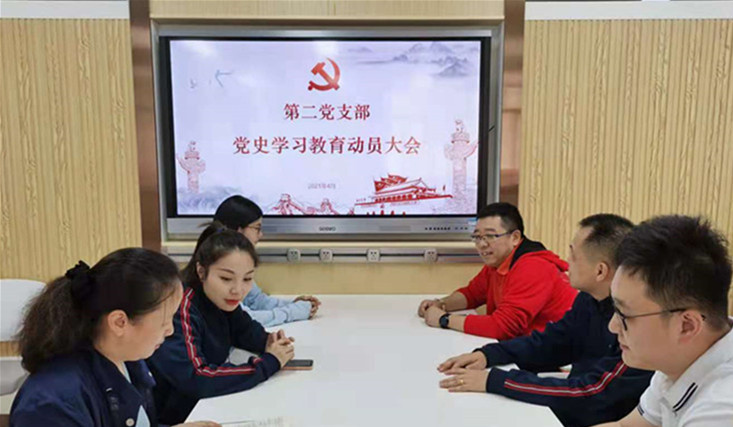 4月22日,第二支部召开党史学习教育动员大会,龚颖书记带领大家认真学习习近平总书记在党史学习教育动员大会上的重要讲话精神。