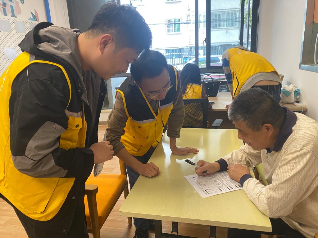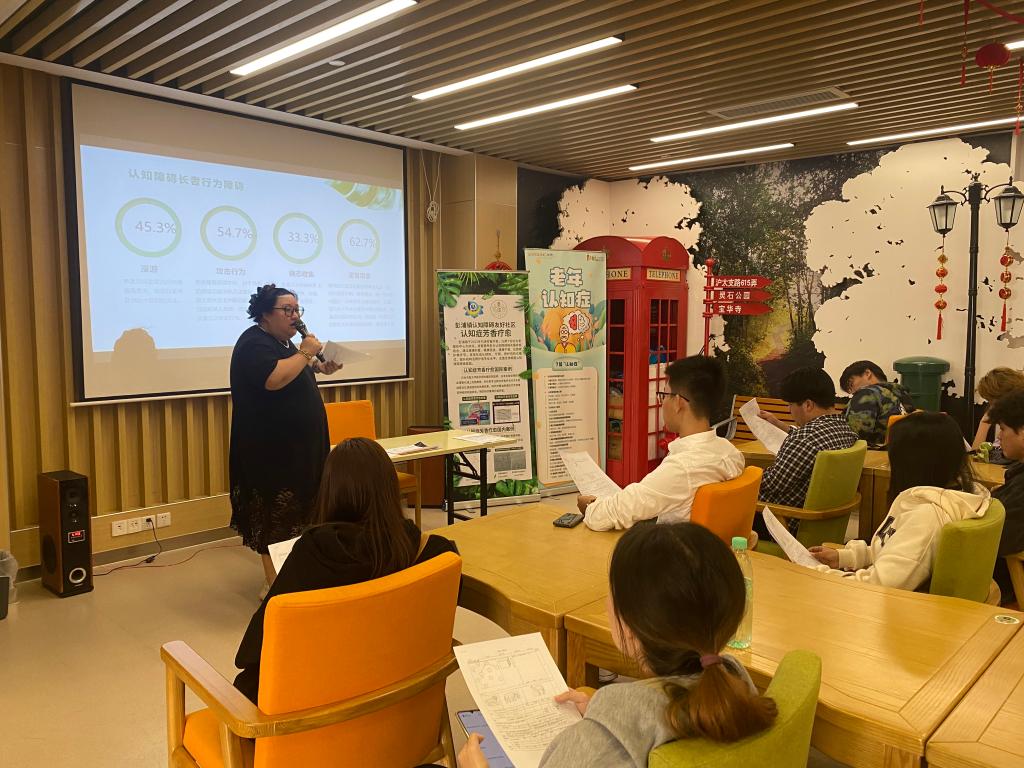 活动开始时彭浦镇综合服务为老中心开展了认知障碍友好社区志愿者培训,围绕认知障碍临床特征、精神行为症状的类别、蒙特利尔认知评估量表等内容为支部教师和学生志愿者们科普了认知障碍症知识,教会师生们掌握量表筛查方式。培训过后,师生们利用蒙特利尔认知评估量表对老人进行认知障碍症的筛查,提供了3小时的志愿服务。
