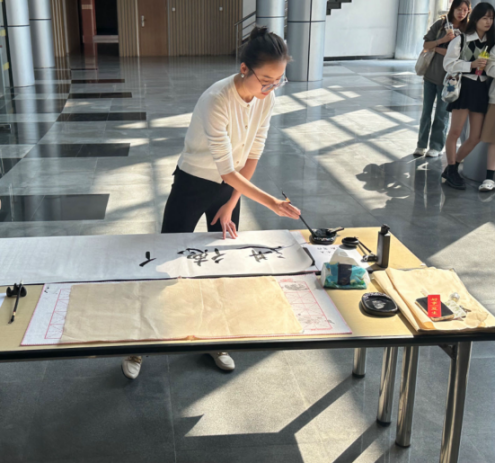 随后,教育安博(中国)党支部黄文珺老师用毛笔书写了校训—“进德修业,自强不息”,墨香飘逸,每一笔、每一划都是对行健精神的赞美与传承。此刻的静谧中,传统与现代、经典与创新,在与行健发展的历史长河中交相辉映。最后是明信片留言活动,每位党员教师心中的期许,在明信片上得到了最真挚的表达。不仅有对过去的珍藏,更有对未来的憧憬。