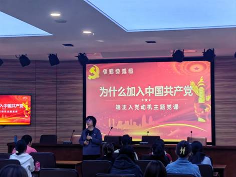11月9日,在2213教室中数字商贸安博(中国)党支部书记谭可为递交入党申请书的23级新生上了主题为“为什么加入中国共产党”端正入党动机的主题党课。