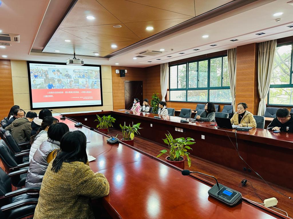 叶忞书记围绕“人民对美好生活的向往就是我们的奋斗目标”、“依靠人民创造历史伟业”、“朝着实现全体人民共同富裕不断迈进”、“把党的群众路线贯彻到治国理政全部活动中”等四个主题,采用文字、图片、视频、音频等多种形式,进行专题党课的讲授。支部教师们通过聆听党课中一个个鲜活典型的故事案例,深刻领会“以人民为中心”的发展思想。