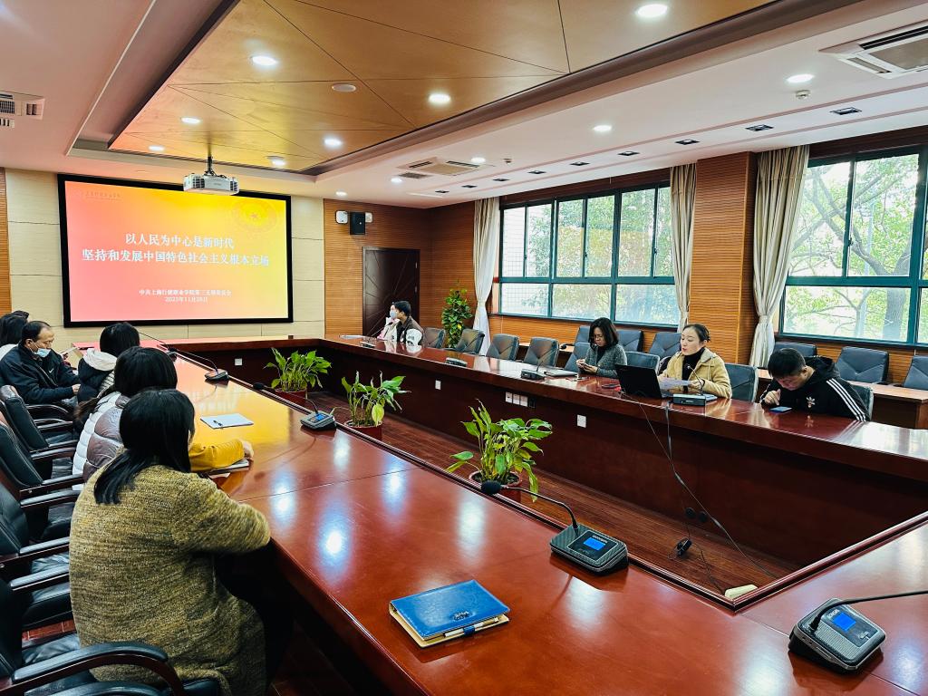 为深入学习贯彻习近平新时代中国特色社会主义思想,推动党员教师深入领会和牢牢坚守以人民为中心的根本立场,11月28日中午,行政第三党支部于2214会议室开展以《以人民为中心是新时代坚持和发展中国特色社会主义根本立场》为题的专题党课学习活动。会议由党支部书记叶忞主持,支部全体党员教师参加。