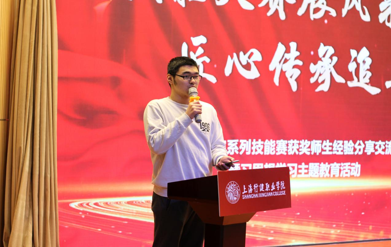 会上,沈博、侯竣浩、宗嗣华作为获奖学生代表先后上台发言,感叹成绩和荣誉来之不易,是在学校领导和老师的共同关心和帮助下,经过大赛团队每一个师生攻坚克难,坚持不懈的努力下取得的。他们分享了参赛经验,呼吁更多的同学们积极参与到技能竞赛中,以坚如磐石的信心、只争朝夕的劲头、坚忍不拔的毅力,创新进取,争取更好的成绩。