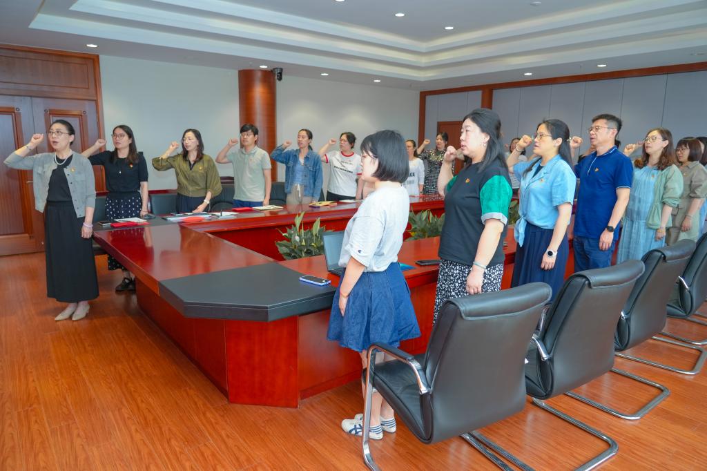 在工会主席钱慧懋的带领下,支部全体党员面向党旗庄严宣誓,重温入党誓词,回顾入党时的庄严承诺,接受心灵的洗礼,进一步激励和提醒党员不忘初心、牢记使命。