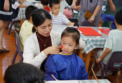 活动过程党员教师志愿者与幼儿园的孩子们贴国旗画报,他们细心地协助孩子们粘贴国旗画报,每一面小国旗都承载着对祖国的无限热爱与敬仰,教室里洋溢着浓厚的爱国氛围。在“我为祖国放烟花”的手工制作环节,孩子们在学生志愿者的引导下,用颜料绘出夜空中最亮的色彩,仿佛每一朵“烟花”的绽放都是对祖国繁荣昌盛的美好祝愿。同时,教师和学生志愿者们指导小朋友给扇子缓缓染上色彩,每一步都充满了对传统文化的敬畏与传承。小朋友们虽然手法生涩,但那份专注与投入,成为了他们心中对祖国文化的一次小小致敬。