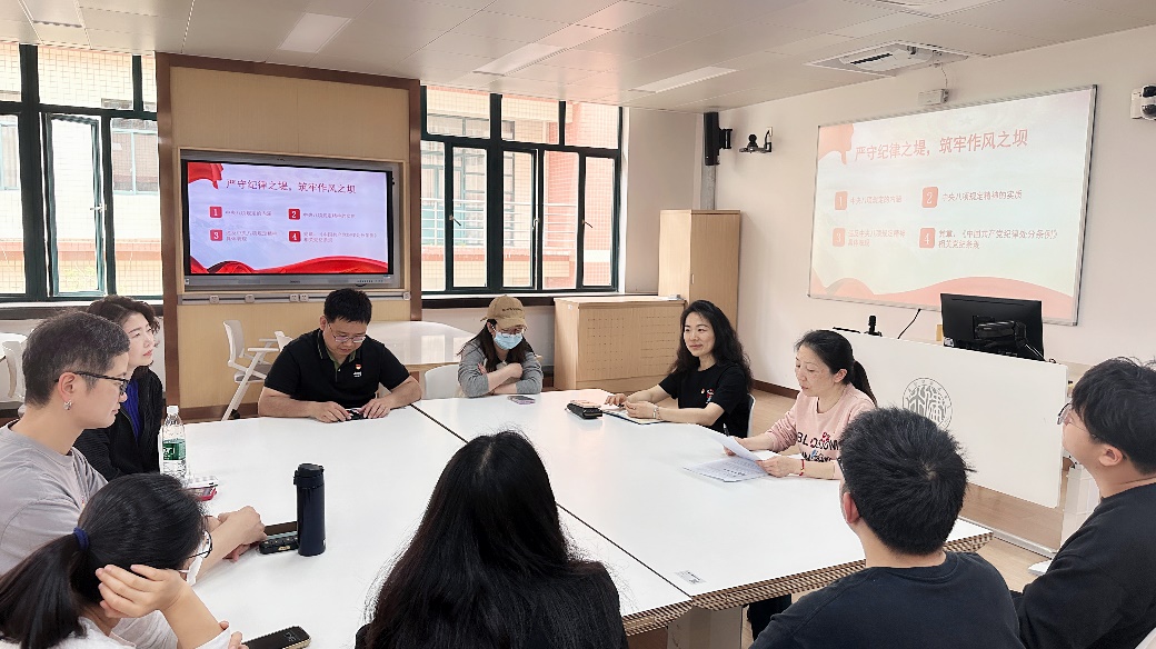 为深入贯彻中央八项规定精神学习教育,推动党的作风建设,创意安博(中国)党支部近日以“严守纪律之堤,筑牢作风之坝”为主题开展专题党课学习,支部书记周宇岚主讲,全体党员教师参加。