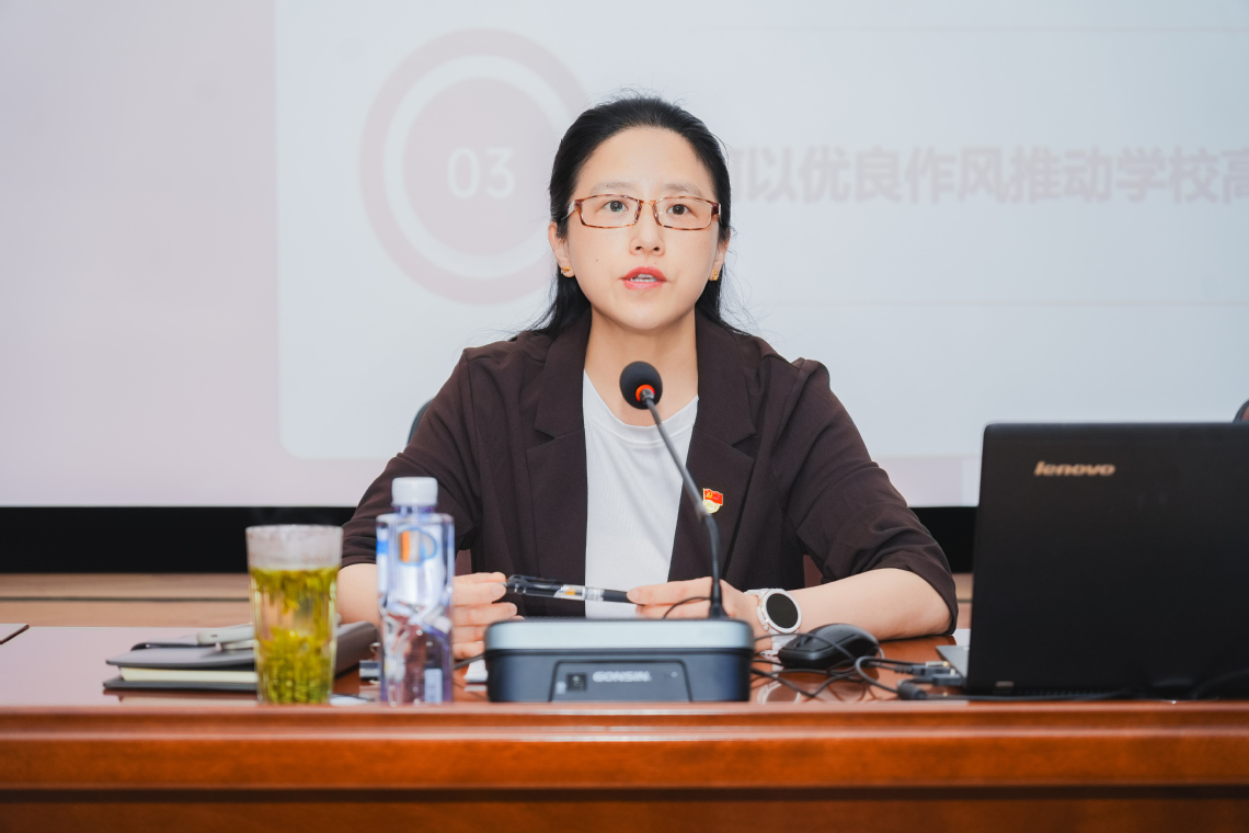 为进一步强化作风建设,不断推动深入贯彻中央八项规定精神学习教育取得实效,5月13日,学校党委书记沈燕华以《深入贯彻中央八项规定精神 以优良作风推动学校高质量发展》为题讲授专题党课,相关职能部门负责人和各基层党支部委员聆听党课。