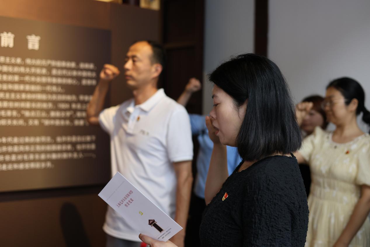 党课尾声,党支部书记毛娅君带领全体党员面向党旗重温入党誓词,以铿锵誓言筑牢理想信念。活动引导党员在历史场景中感悟作风建设的时代传承,推动中央八项规定精神落实。