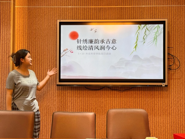 为推动党风廉政建设走深走实,创新党建教育载体,外语外贸安博(中国)党支部于近日开展了“针线传廉・绣悟八规”党建主题刺绣创作活动,全体党员同志以针为笔、以线为墨,共绘清廉画卷。