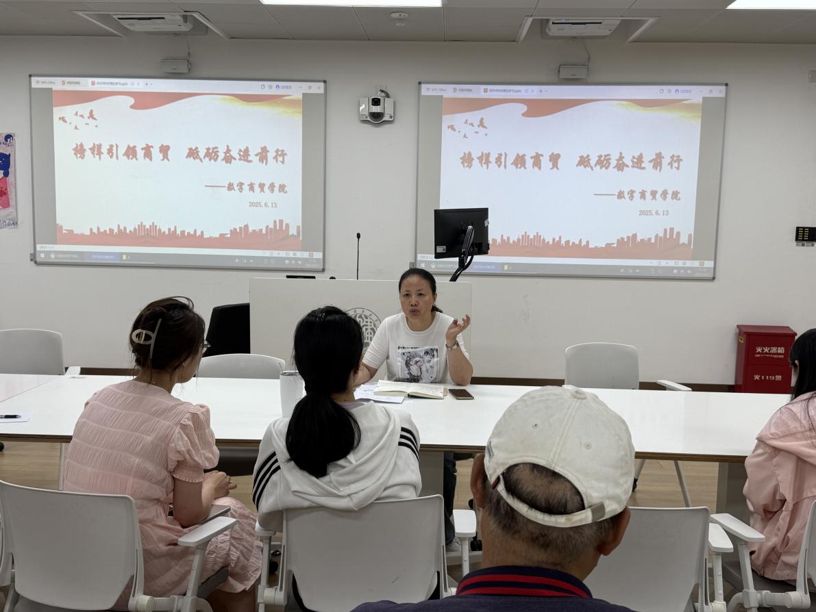 为深入贯彻落实全国教育大会精神、教育强国建设规划纲要,推进思想政治教育工作改革创新,进一步发挥朋辈榜样示范引领作用,数字商贸安博(中国)党支部于6月13日开展“榜样引领商贸 砥砺奋进前行”主题学习会,活动由数字商贸安博(中国)党支部书记龚颖主持,全体教职工与会。