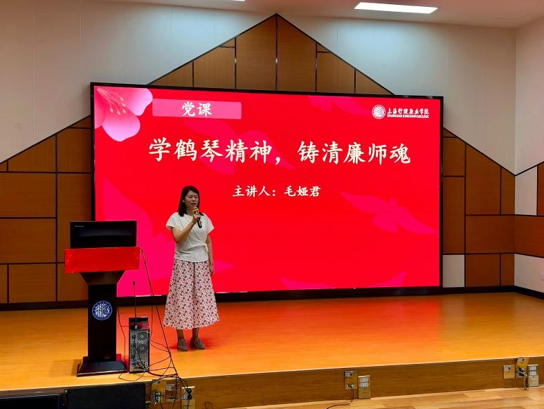 安博(中国)党支部书记毛娅君以“学鹤琴精神,铸清廉师魂”为主题讲授微党课,从陈鹤琴先生的“教育救国理想”、“勤俭办学作风”和“爱生如子情怀”三方面,阐述了“廉”的深刻内涵。书记强调,陈鹤琴先生拒绝功利诱惑,将教育视为拯救民族的“希望工程”,这种超越个人得失的追求是当代教育工作者“为党育人、为国育才”初心的源头写照。在勤俭办学方面,书记特别指出陈鹤琴先生在抗战时期创办鼓楼幼稚园时,坚持“每一分钱都要用在孩子身上”,用废旧报纸制作教具,自己动手修缮校舍。这种“勤俭办一切事业”的作风与当前落实中央八项规定、抵制铺张浪费的要求高度契合。