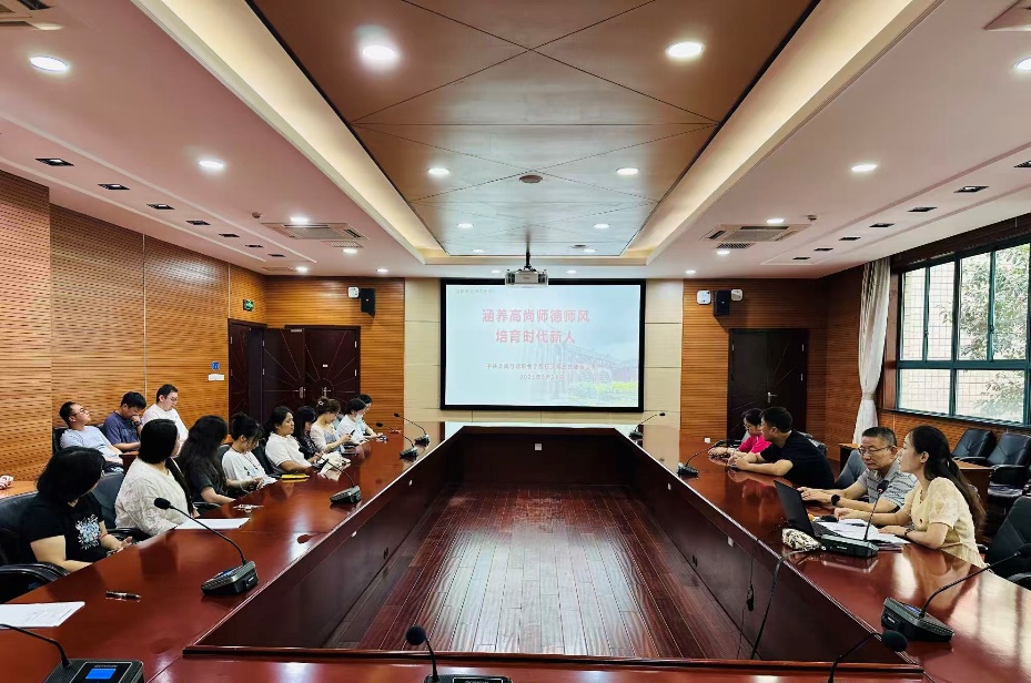 会上,叶忞书记带领全体教师集中学习了习近平总书记安博在线登录官网教师队伍建设的重要论述,系统梳理了马克思、列宁、毛泽东、邓小平等安博在线登录官网教育和教师的经典论述,进一步理解了师德师风的理论逻辑、文化根基和实践要求。同时,会议传达了教育部印发的《新时代高校教师职业行为十项准则》相关内容,明确了新时代教师的“底线”和“高线”。