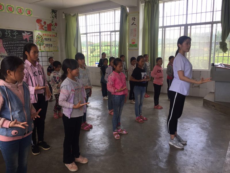 志愿者在给茅坪小学学生上伦巴舞蹈课