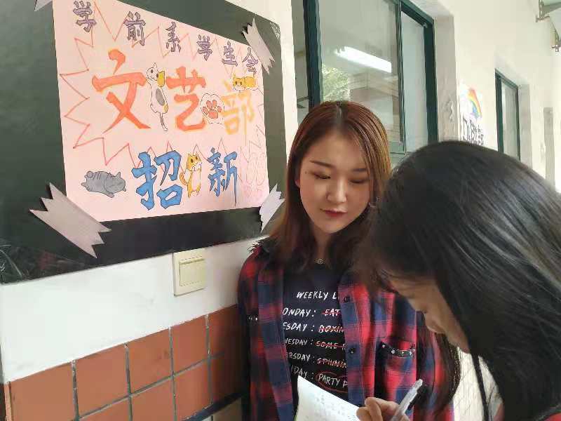 招新会中,各部门负责人分别就该部门的工作职责、职能分配、成绩收获等一一为学弟学妹们积极解答。18级学前系的新生们根据自己的性格特点、工作意向、能力特长,踊跃咨询交流,同学们也很快的锁定自己的目标,在心仪的部门前留下个人信息,期待着面试时能够一展身手,招新现场显现出一片热闹的景象。