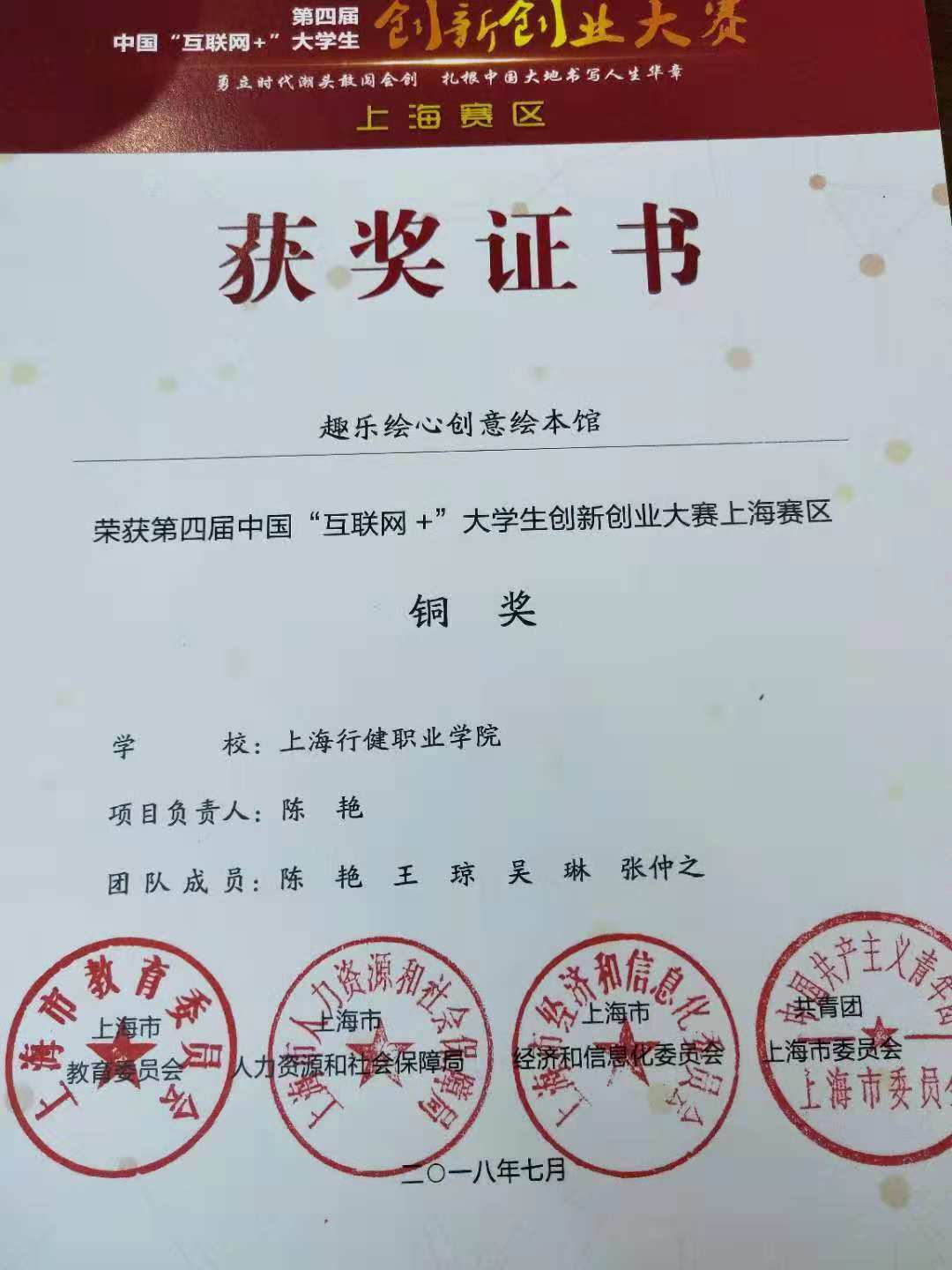 由上海市教委、市人社局、市经信委、团市委等主办的第四届中国“互联网+”大学生创新创业大赛于2018年9月份公布获奖名单,学前教育系学生参赛项目“趣乐绘心”、“闪耀星”荣获大赛两项铜奖。学前系将抓住机会,在学生中努力营造更加浓厚的创新氛围,在工作中更为扎实的推进大学生创新创业工作。