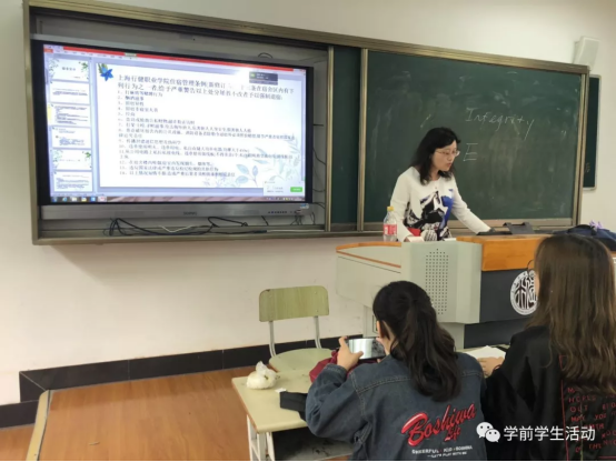 2019年4月24日星期三,18学前1班全体成员以及辅导员范超君老师在7304教室开展了班会,主要内容是以宿舍安全和互联网创新创业大赛为主。