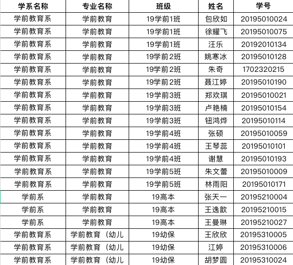 学前教育系“优秀毕业生”名单