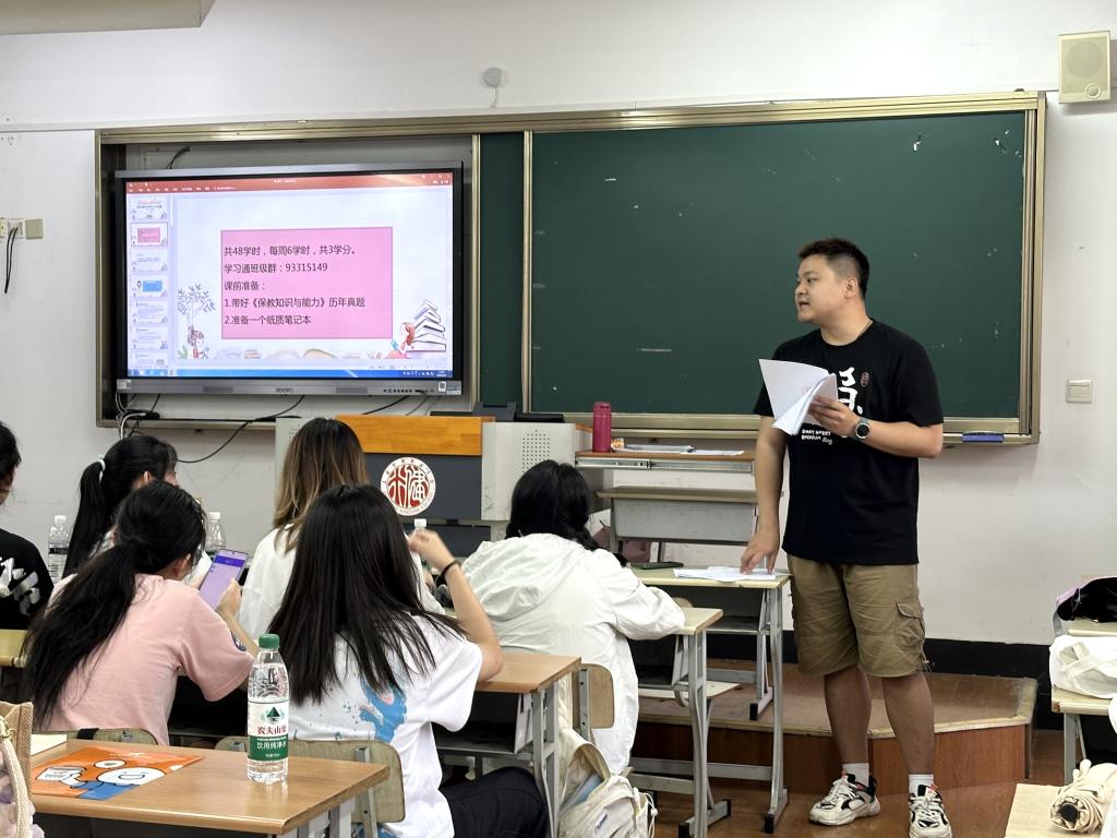 随着金秋送爽,23学前中高贯通1班的同学们迎来了又一学年的崭新开始。为明确新学期目标,激发同学们的学习热情与职业规划意识,9月9日辅导员王亮老师在七号楼教室内举行了新学期开学班会。