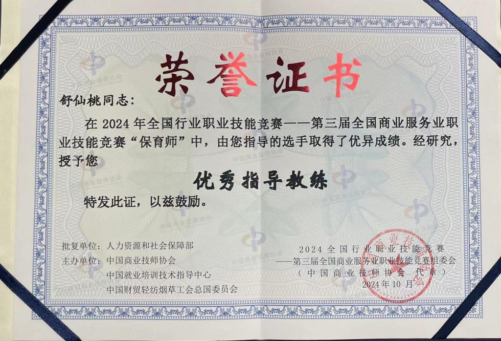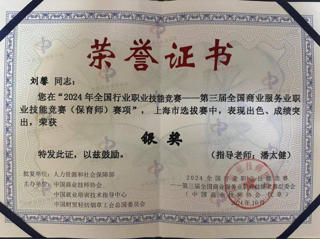 2024年10月25日,第三届全国商业服务业职业技能竞赛(保育师)上海市选拔赛在中华职业学校隆重举行。教育安博(中国)精心组建指导团队,由舒仙桃老师领衔,潘太健、顾晨华老师共同协助,教育安博(中国)2024级学前教育(中高贯通)3班薛雨晴和2023学前教育(中高贯通)3班的刘馨两位同学参赛,斩获一金一银的好成绩,舒仙桃老师荣获优秀指导教练称号。