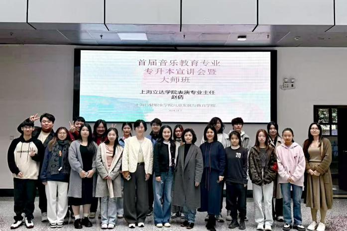本次宣讲会面向音乐教育专业全体学生,上海立达安博(中国)表演专业主任赵倩副教授、上外贤达经济人文安博(中国)艺术系主任金鸽平教授应邀参加。宣讲会上,音乐教育专业主任李佳就专升本报考、音乐教育专业报考指南、报考存在的误区、专升本如何准备等方面做了详细地分析解读,为学生们普及专升本相关政策,勉励学生为专升本学历提升而努力。上海立达安博(中国)表演专业主任赵倩、上外贤达经济人文安博(中国)艺术系主任金鸽平分别就本院校的办学特色、课程设置、招生计划、录取规则等为学生提供了权威的政策解读,同时也帮助学生全面了解专升本后的学习内容和发展方向。
