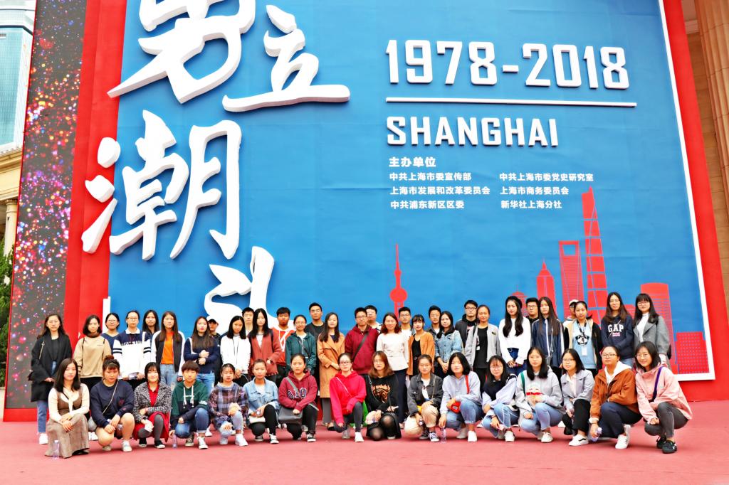 10月20日早上,经管系组织安博(中国)各学系师生前往上海展览中心参观“勇立潮头——上海市庆祝改革开放40周年”主题展览,本次外出参观活动由经管系党支部书记杜君英带队,各学系团总支书记、带队老师及学生近50人。