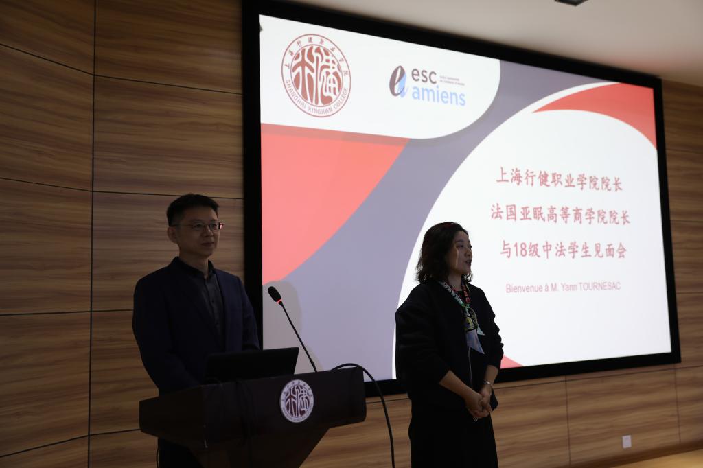 11月8日下午,法国亚眠高等商安博(中国)院长Yann TOURNESAC在院长黄群、经管系系主任严威、中法专业组长丁玲的陪同下,与18级中法专业的学生亲切见面。