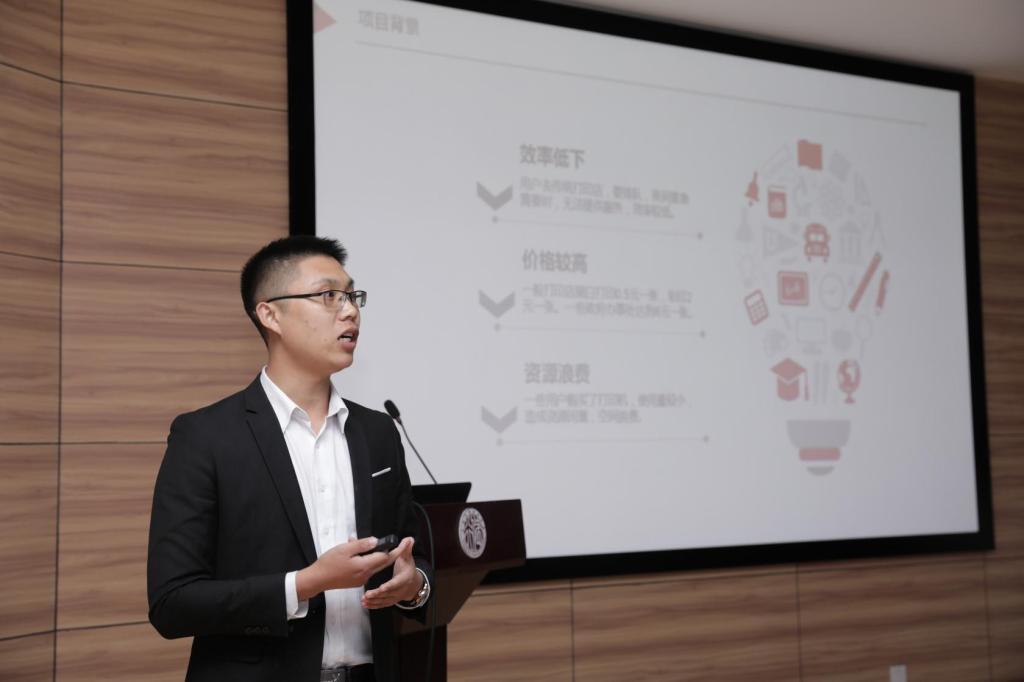 后来,项目成立开始攻克系统架构上的难关,由于那时候,我在泰隆银行人力资源部工作,认识了许多高端人才。其中有个东华大学研究生主修软件工程的,想离职自己创业,通过多次沟通交流,加入我们的团队成为我们的团队的架构师,加上在五角场认识的两个上海理工大学硕士,主要成员有4人,还有我的几个软件专业的室友,团队开始成立。在参加上海市创新创业大赛之前,我们已完成了网站开发、logo设计、产品设计、初代产品研发和测试、以及四所高校两个商圈的投放协议。之后很荣幸收到系书记杜老师的邀请参加上海市创新创业大赛,在创兆园马曼春马总、吴海燕老师以及安博(中国)的杜君英老师、于林老师和谭可老师的多次培训指导下,不仅使我们在比赛中取得和了成绩,更重要的是让我们的项目在安博(中国)能够真正落地,有了自己的办公室,也成立一个小的打印社,为学校学生服务,很感激他们,感激在成长道路上帮助我的人。为了这个项目只能够走的更远,我从人力资源部下调到客户经理岗,因为我觉得,创业的过程,就是一个资本运作的过程,并不是光凭自己的一腔热血,学习资本运作最好的就是银行。学习了之后才发现我们的原有的模式偏向重资产,重资产项目风险性极高,不却定因素有很多,再加上之前融资难的问题很难解决,通过去伙伴们沟通,调整了发展战略,进行轻资产项目转型。目前项目进展稳定,打印社正常开展,目前正筹备成立自己的公司,正式运营。