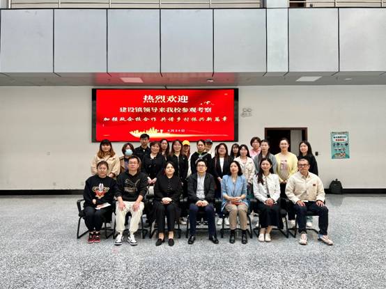 建设镇陈达党委副书记和袁小燕党委委员就我校政校企协同育人取得的阶段性成果,提出了双方进行更深层次的产学研合作共赢的美好愿景。他们指出建设镇电商乡村振兴处于起步探索期,期望就数字化场景搭建、融媒体虚实结合促进乡镇创新发展寻求新出路。