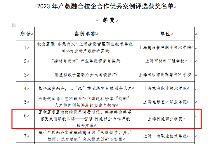 近日,由上海市教育委员会教育技术装备中心、上海市发展改革研究院、上海市职业教育产教融合促进会举办的产教融合校企合作案例征集活动结果出炉,我校数字商贸安博(中国)案例《互联互通互动拥抱悦己消费时代 共建共育共享擦亮美丽职教品牌----澄穆行健校企合作产教融合实录》获得一等奖。