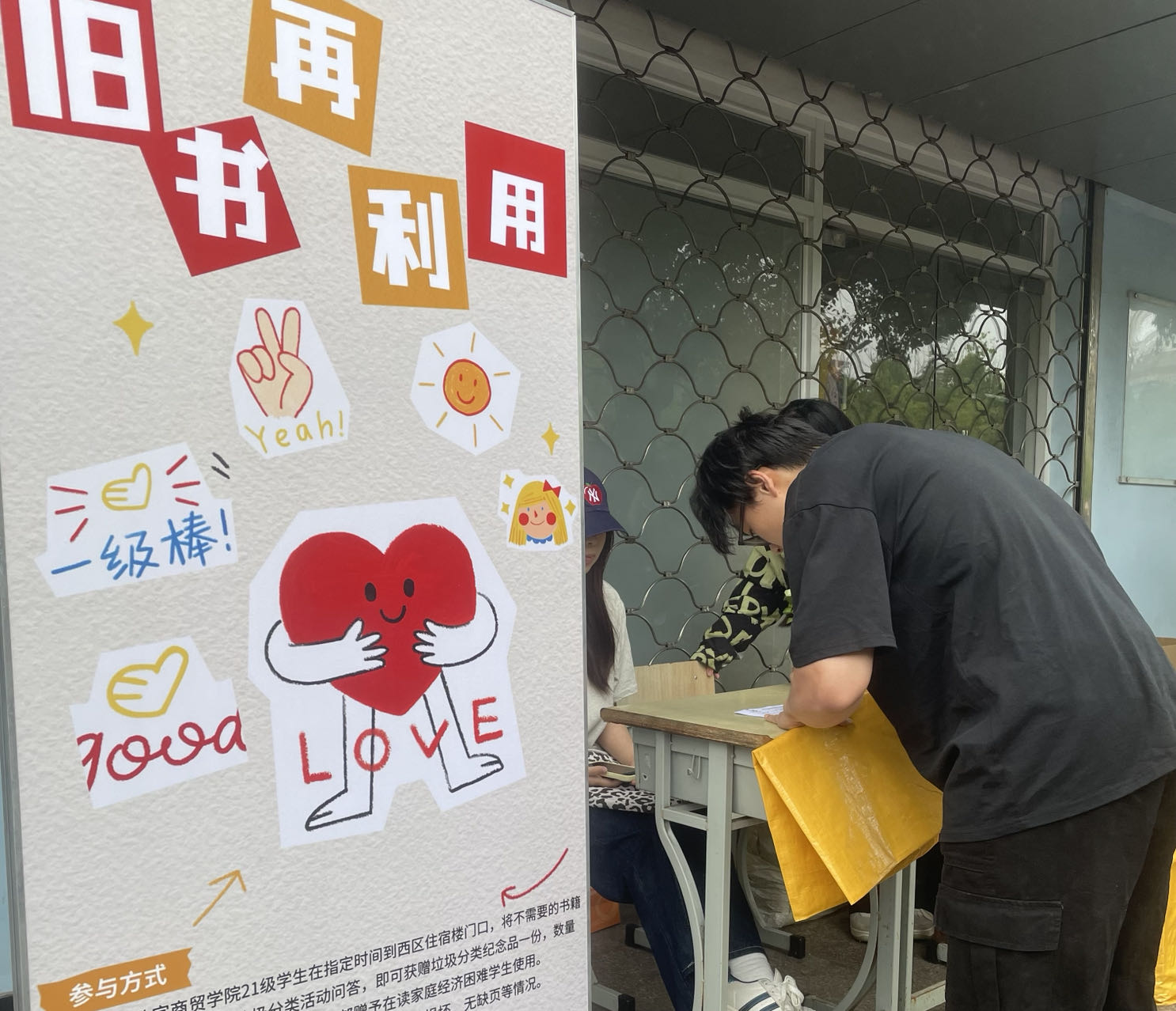 6月6日-7日,数字商贸安博(中国)在高平路西区宿舍门口组织开展了数字商贸安博(中国)毕业季“旧书再利用”活动。旧书再利用是一种环保的生活学习方式,旨在将大三毕业生之前在校就读期间的教材书或其他旧书籍转化为有用的资源。通过将学长学姐赠予的旧书进行清洁消毒整理后,将这批书无偿转赠数字商贸安博(中国)经济困难学生,这样循环利用的学习方式不仅可以减少废物的产生,还能够延长书籍的使用寿命,提高资源利用率。在这毕业季期间,21级毕业生可以通过赠书的方式兑换行李编织袋,方便在毕业季办理退宿手续时,将行李装入编织袋方便搬离宿舍。