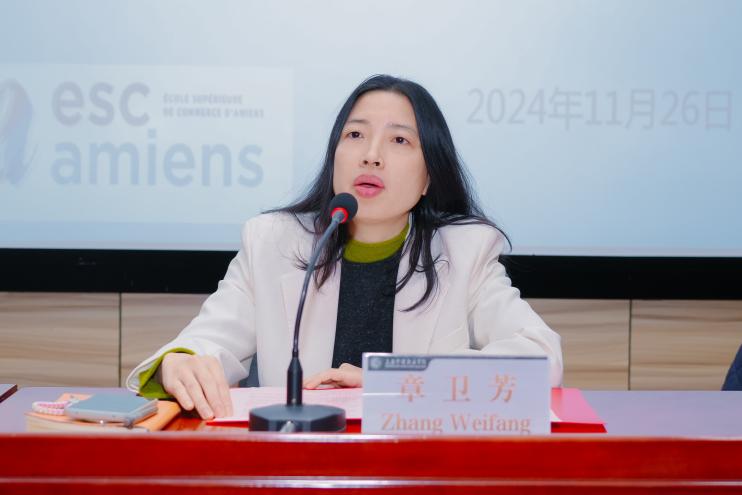 随后,法国亚眠高等商安博(中国)院长Yann TOURNESAC一行又前往2113会场与我校工商企业管理(中法合作)专业24级、23级学生进行了见面交流。