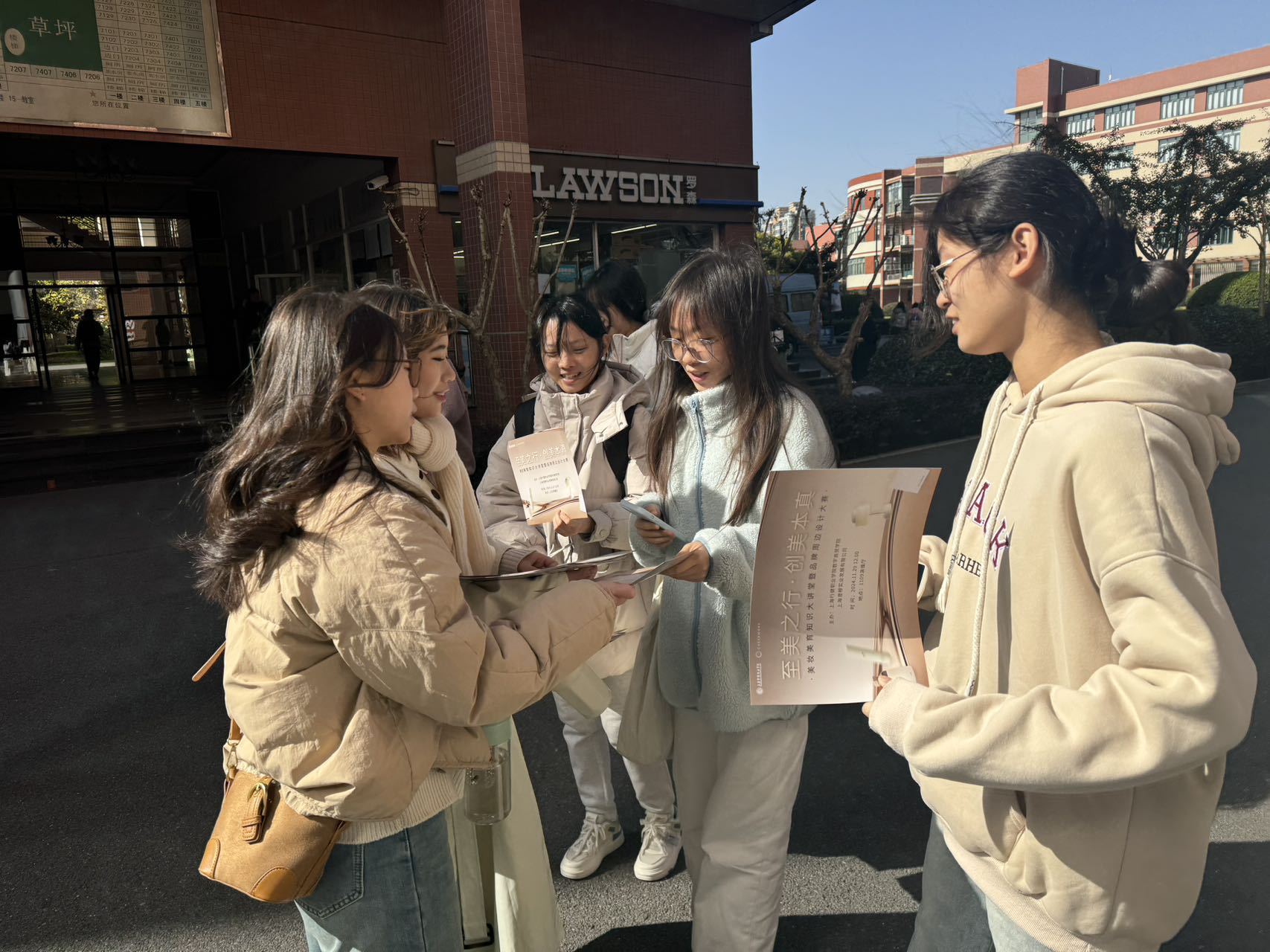 数字商贸安博(中国)师生于11月27日起至12月初,在食堂门口搭建了展架以及易拉宝,为此次活动提发起了预热宣传,多位安博(中国)志愿者学生自发在校园内积极宣传此次讲座。