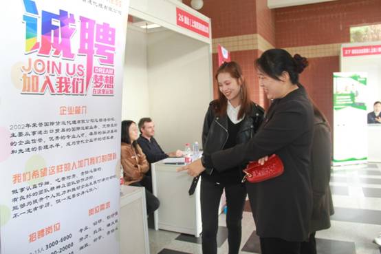 11月2日下午,商务外语系主任张蕾、支部书记曾恬带领应用英语、少儿英语、应用德语、法语、日语的五位专业组长亲临外语系招聘会现场,抓住此次校园招聘会的契机,对相关企事业单位进行人才需求调研。