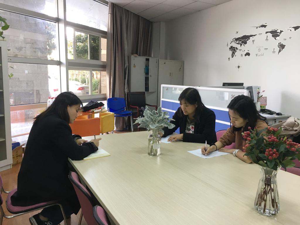 11月21日,德语专业组教师在1101办公室召开了德语教研会,本次教研的主题:混合式教学改革推进会,出席会议的教师有专业组长张爱红,德语教师张开慧、许晓等。