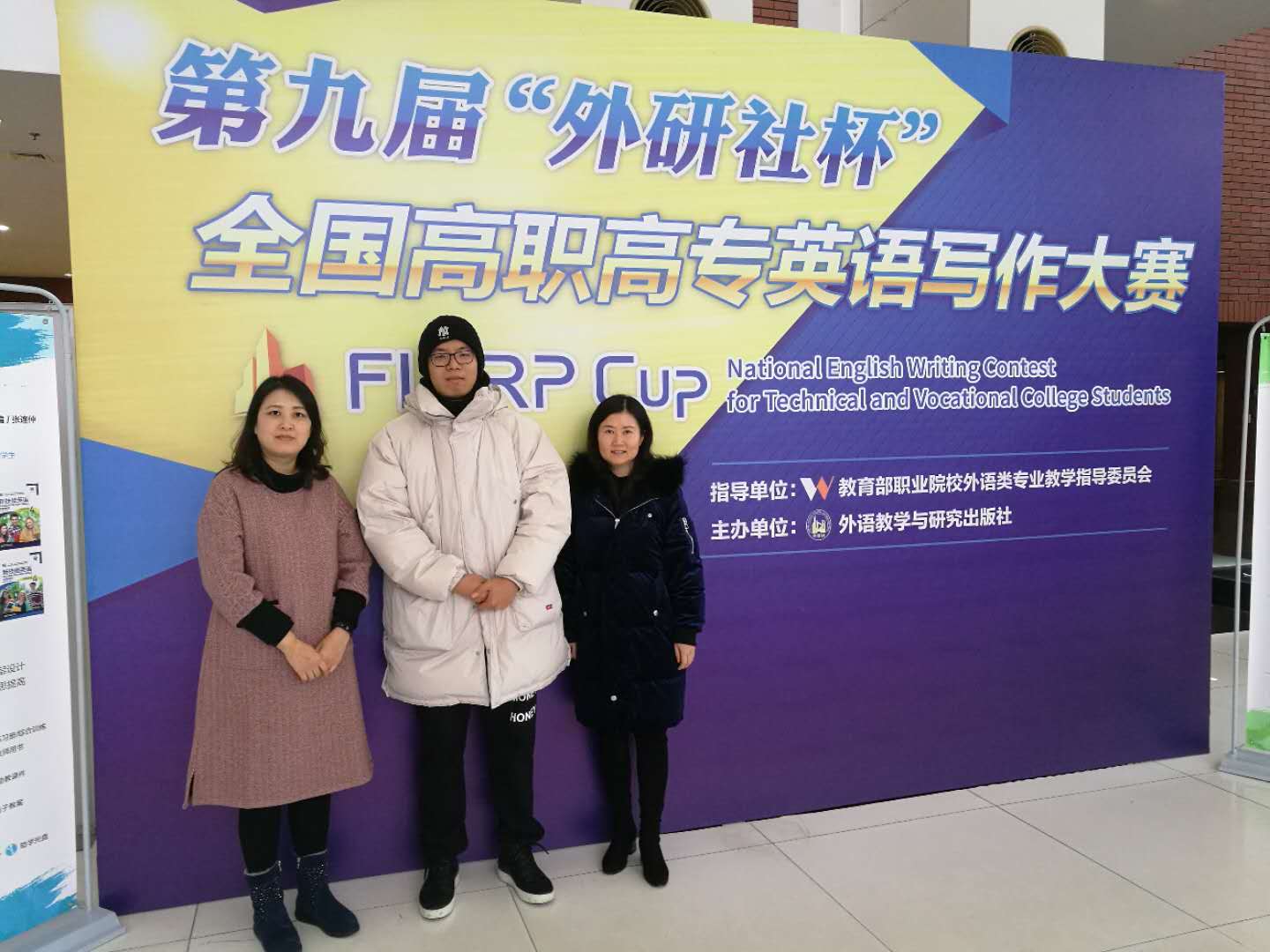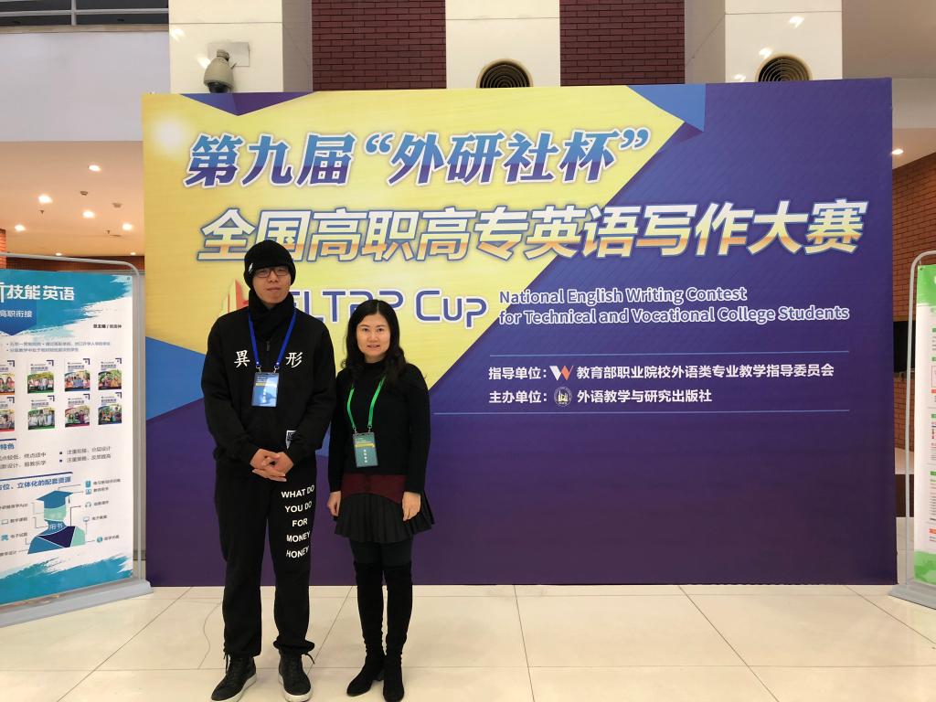2018年12月22日,由教育部职业院校外语类专业教学指导委员会指导,外语教学与研究出版社主办的第九届“外研社杯”全国高职高专英语写作大赛总决赛在北京举办。由杨晓霞老师指导的应用英语专业董航同学在专业组比赛中荣获三等奖。