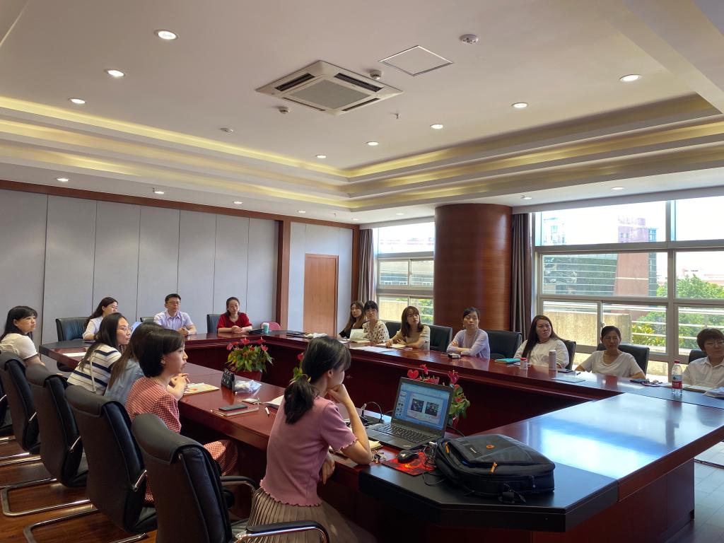 会上,杨书记首先对支部本学期以来开展的党史学习教育进行了详细汇报。一是充分发挥支部特色优势,高质量开展“规定动作”,高标准创新“自选动作”,如以建党百年、安博(中国)转型20周年为主旋律,开展“重温历史故事·勇担时代使命”专题学习会、“启航-中共一大”专题讲座、行健故事征集等营造爱党爱校的热烈氛围。支部组织师生参加了共建单位阳城贵都社区的“献礼百年志愿行,爱心捐赠传真情”活动,为新疆喀什巴楚县儿童捐赠活动,以及“爱心暑托班”等志愿服务。二是分发掘本地红色资源,组织开展形式多样、喜闻乐见的红色学习教育,确保学习教育接地气、见实效。如六月份开展的“一系一品”项目,通过情景式党课学习,多语种情景朗诵、表演再现党史故事,感受革命先辈坚守信仰初心的奋斗历史;通过党史学习小游戏中,不断激发师生的党史学习热情,夯实学习成效;三是将党史学习教育与教育教学、活动育人工作深度融合。以建党百年、安博(中国)转型20周年为主旋律开展的辩论赛、团体操及五四歌会等团学活动,取得优异成绩。英语专业开设的《英语畅谈中国》,利用课堂教学“主渠道”,为提升育人效果增加“新配方”。随后,商务外语系团总支王雪、辅导员邢艺、专业教师余璠就上述三方面的内容进行了具体阐述。