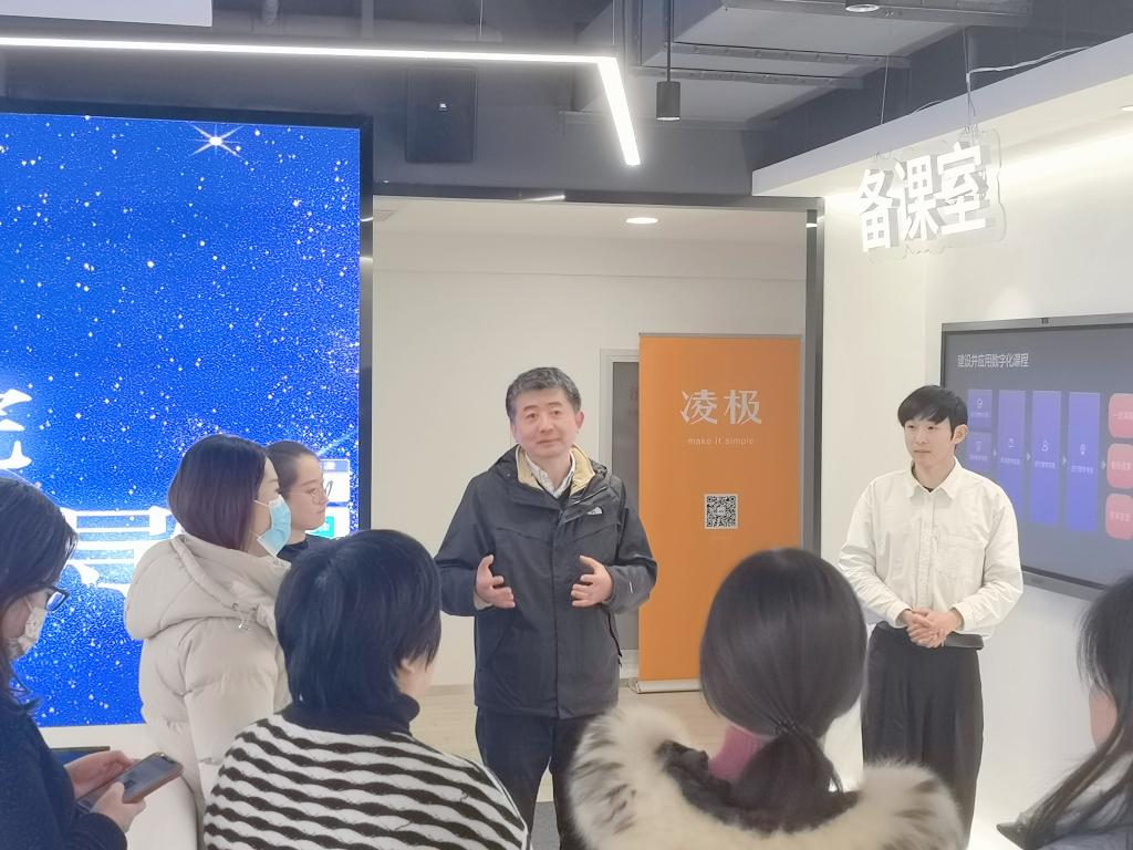 凌极公司是一家专注于教育信息化的高新技术企业,致力于建造智慧教育技术平台,特备擅长为外语学科教学提供智慧教学综合解决方案。外语安博(中国)教师一行受到了凌极公司董事长兼CEO沈嘉、客户经理杨海钢、上海华琪百诚软件有限公司负责人邵琪淼的热情接待,并在他们的带领下参观了凌极展厅的智慧语言实验室、备课室、专业实验室等,听取并体验了语言资源库、云桌面、云主机等产品的数字化功能,深刻体验到了在人工智能和大数据时代下,新型智慧教学环境的教学和管理流程。