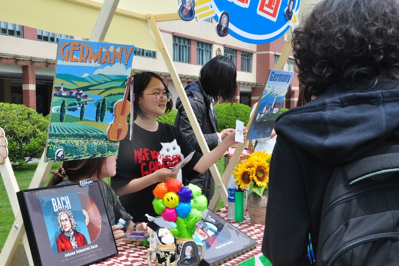 活动现场人头攒动、气氛热烈。中国展区的漆扇制作吸引了不少同学驻足体验,感受非遗工艺的魅力。英国展区的英式下午茶清新雅致,茶香与司康的甜香交织,仿佛置身伦敦午后时光。日本展区的剑玉挑战和绘马祈福墙让同学们在趣味中感受东方文化的温柔细腻。法国、德国展区分别设置了名画拼图与乐器知识挑战,既考验眼力与记忆力,也启发了大家对艺术与音乐的热爱。非洲文化展区的人体彩绘别具一格,充满色彩与创意;南北极环保展区则通过限时垃圾分类挑战,倡导可持续理念,引导绿色低碳生活方式。万国音乐汇上,乐队现场演奏、各国歌曲轮番上演,将全场气氛推向高潮。